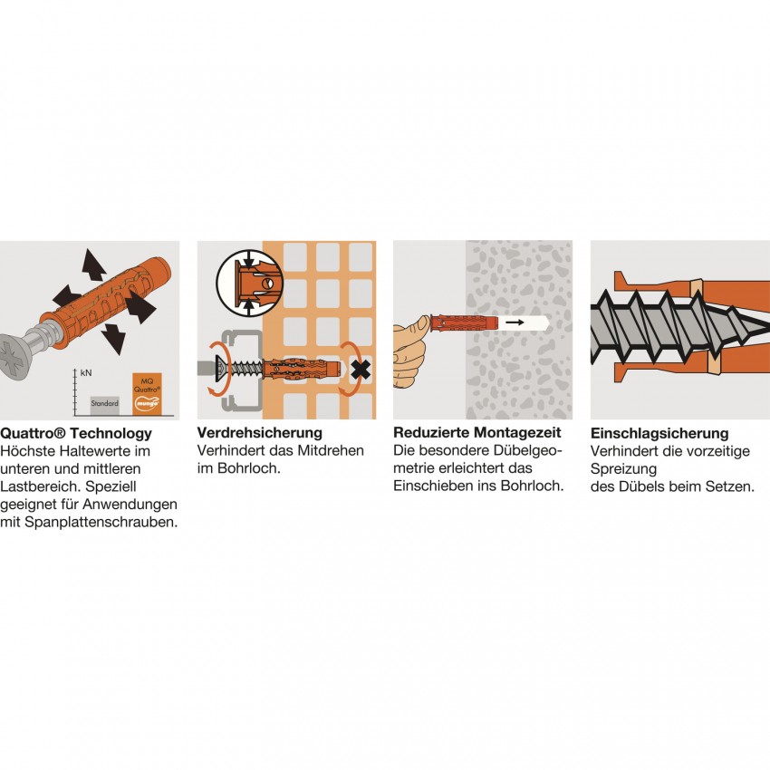 Plastamasa dībeļi MUNGO MQ 6x30Artikuls: 1050060Krāsa: Oranža Materiāls: Neilons
