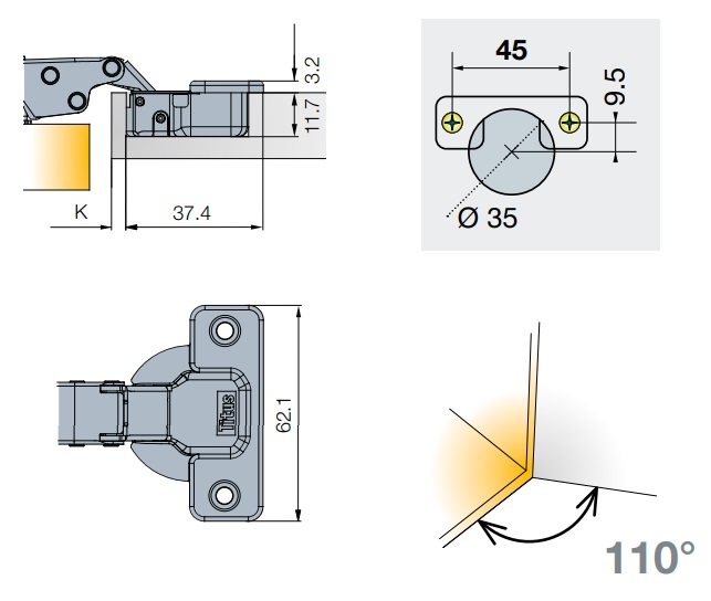 Urbuma diametrs 35mm, dziļums 12mm