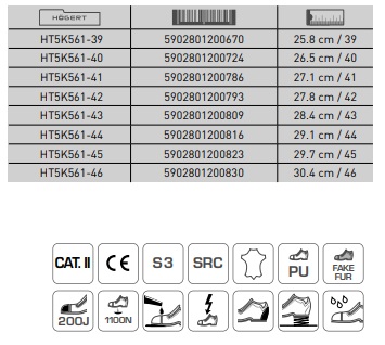 S3 drošības kategorija. Purngalā iestrādāts metāls pirkstu aizsardzībai (triecienizturība līdz 200 džauliem).