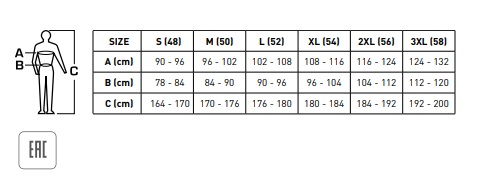 Pieejamie izmēri: S(48), M(50), L(52), XL(54), 2XL(56), 3XL(58).