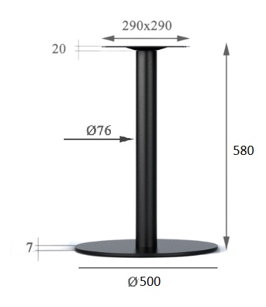 Pamatnes diametrs 500mm, augstums 580 mm, svars 13,80 kg, rekomend. maksimālais virsmas diametrs 800 mm.