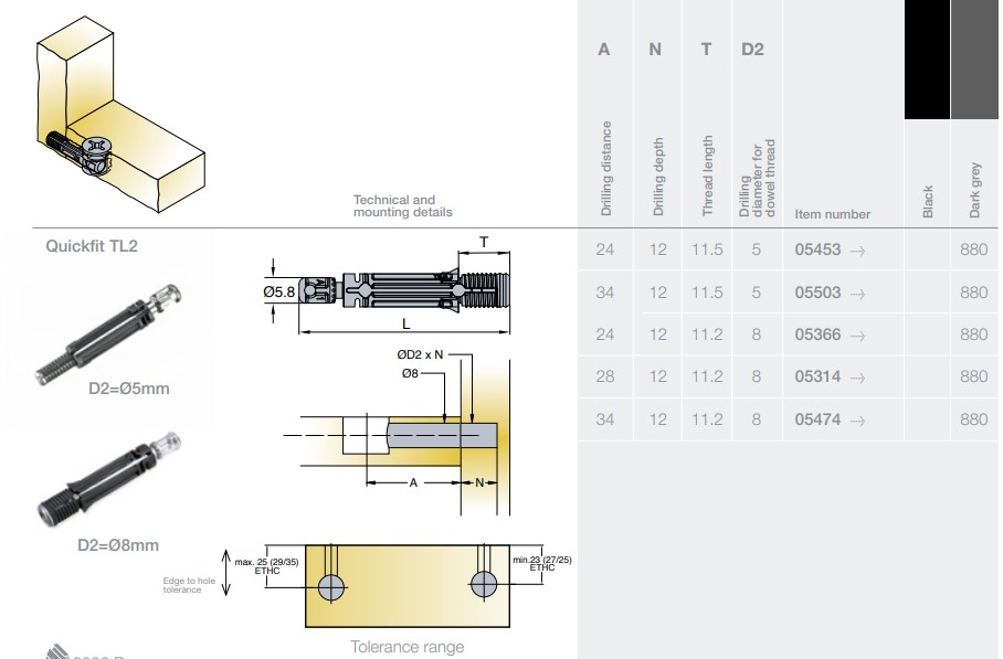 Quickfit TL2 pašfiksējošā ekscentra savilcējskrūve Ø5x34mm(garā)