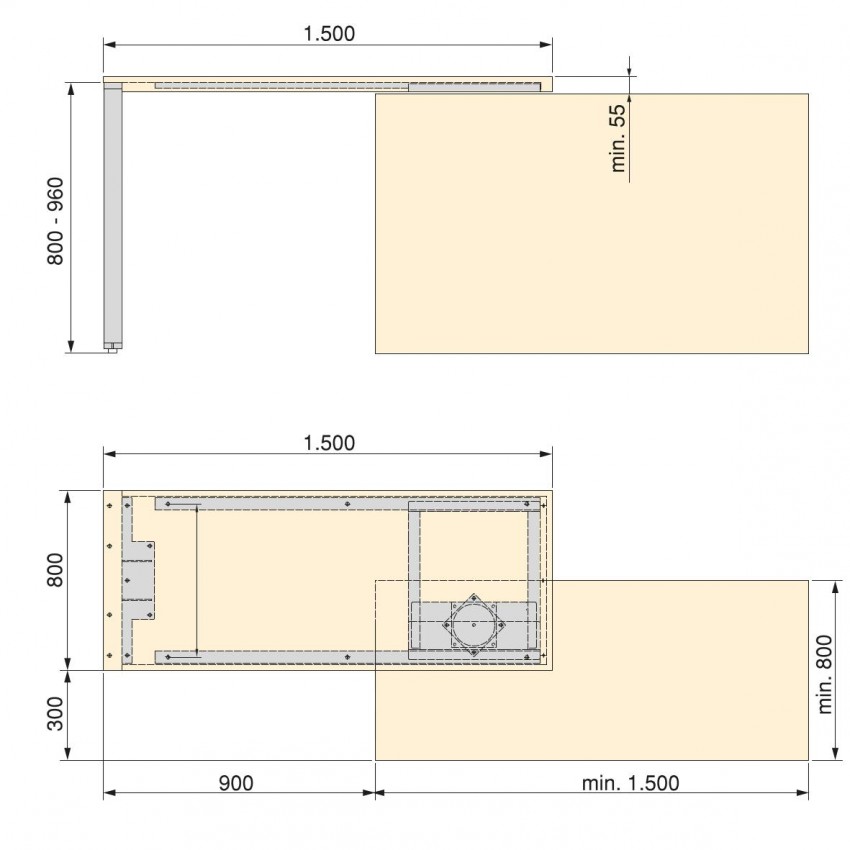 Sestante rotējošs un bīdāms galds uzstādīšanai uz virtuves salas vai uz lineāras virsmas. Sistēma sastāv no dubultā augstumā regulējamas kājas, vadotnes, kas piedāvā divvirzienu nobīdi un virzošos profilus. Viss komplekts liek galdam veikt 180° griešanos, radot īpaši plašu virsmas laukumu. Minimālais uzstādīšanas platums un garums ir 800 x 1500 mm ar kravnesību 80 kg.