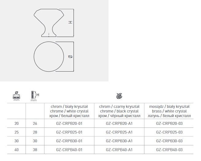 Rokturi GZ-CRPB, D-30mm, H30mm, melnsArtikuls: GZ-CRPB30-A1Krāsa: Melna Kristāls melnā krāsā, kājiņa hromēta |