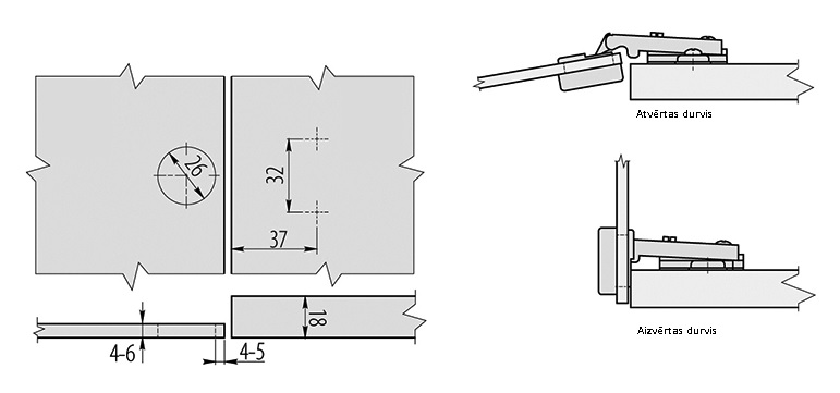 Šarnīrvira Ø26mm stiklam ar hromētu matētu vāciņu, uzliktā. Komplektā 2 gab.
