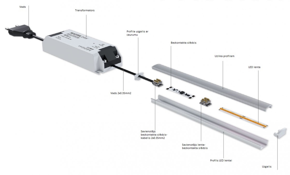 Paredzēts savienot bezkontakta slēdzi ar vadu 2x0.35mm2 .