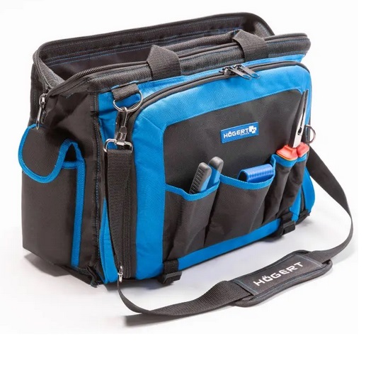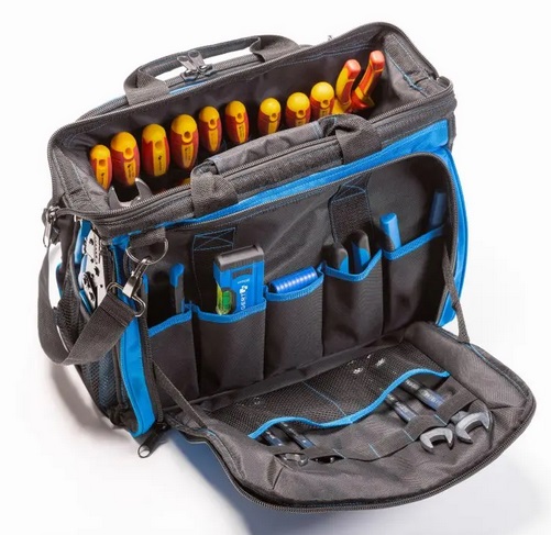 Paredzēta profesionāliem elektriķiem. Soma, kas izgatavota no izturīga 600D poliestera, ir kompakts risinājums profesionāļiem, kuri vēlas, lai instrumenti un piederumi vienmēr būtu pa rokai. Ar uzsvaru uz funkcionalitāti un ilgstošu izturību, šī soma tika izstrādāta, lai atbilstu augstiem nozares standartiem, ļaujot viegli piekļūt instrumentiem, vienlaikus piedāvājot izcilu aizsardzību.