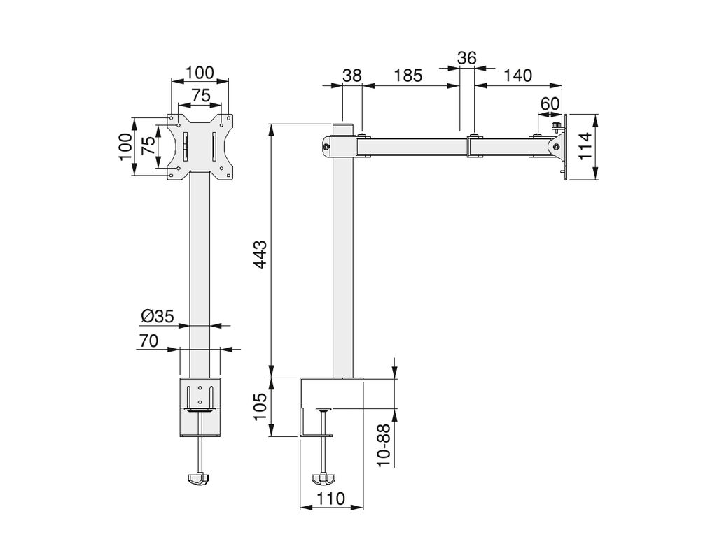 Divas izvelkamas rokas ar maksimālo garumu 430 mm. Ietver kabeļu vadotnes, lai elektroinstalācija būtu sakārtota un paslēpta.