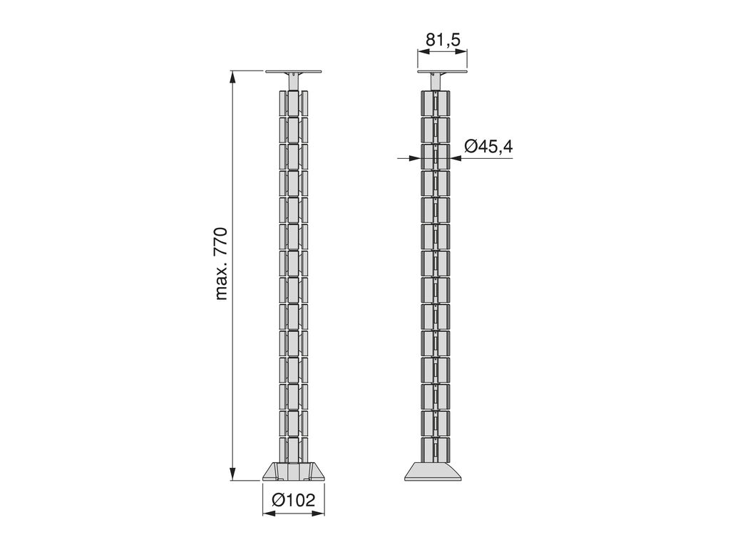 Ar segmentiem iespējams regulēt augstumu, maksimāli līdz 770 mm.