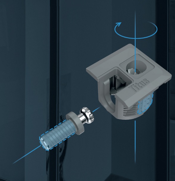 Ātrās montāžas skrūvi/dībeli ievieto materiālā ar roku, un tas izplešas, kad ekscentrs tiek pievilkts, satverot caurumu.