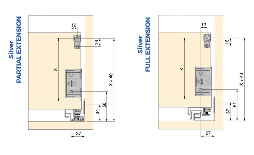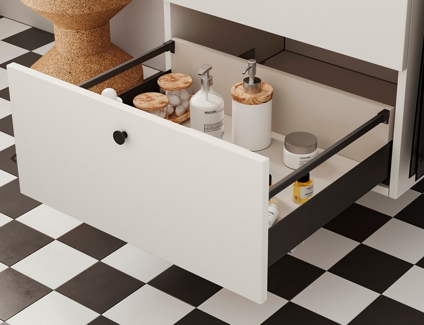 Ļauj regulēt atvilktnes priekšpuses slīpumu un nodrošina lielāku priekšējā paneļa stabilitāti.