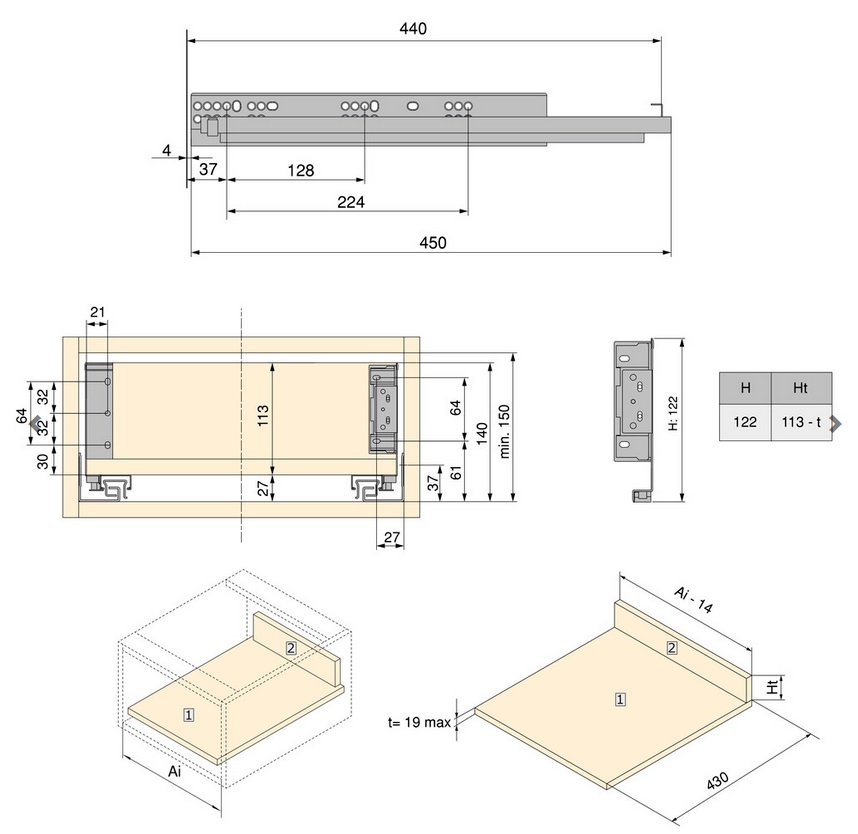 Ļauj regulēt priekšpusi vertikāli ±2 mm, izmantojot ekscentru, un horizontāli ±1,5 mm, kā arī augstumu, izmantojot pilnībā izvelkamās Silver L vadotnes ar mīkstas aizvēršanas mehānismu.