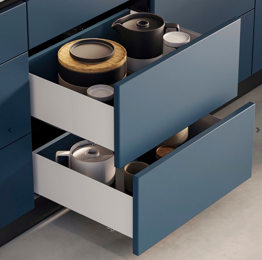 Simplex atvilktne ar metāla malām, augstums ir 122 mm, elegants dizains, paredzēts atvilktnēm ar 490 mm dziļumu, piedāvājot plašu iekšējo telpu un modernu apdari.