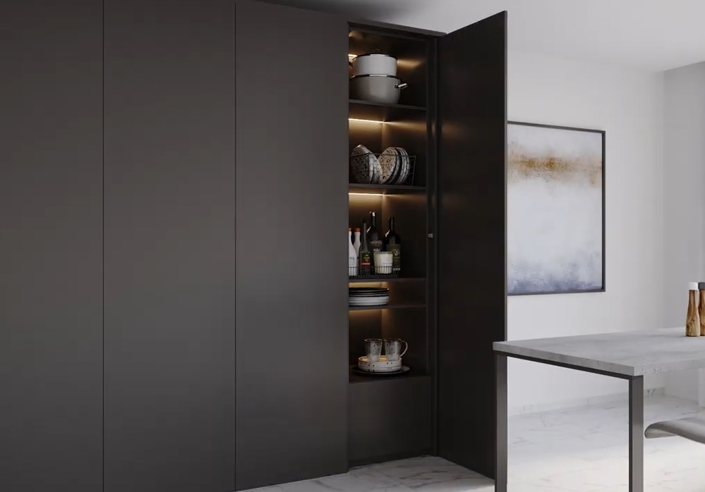 To var piestiprināt pie virsmas, izmantojot piederumu ar abpusēju līmi, vai arī to var iebūvēt mēbelēs, pateicoties tā kompaktajam dizainam.