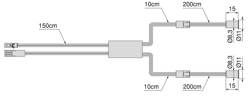 Tas ir izgatavots no melnas plastmasas, tam ir 1,5 m garš kabelis ar MiniLED savienojumiem un 1 m papildu kabelis katrai lēcai.
