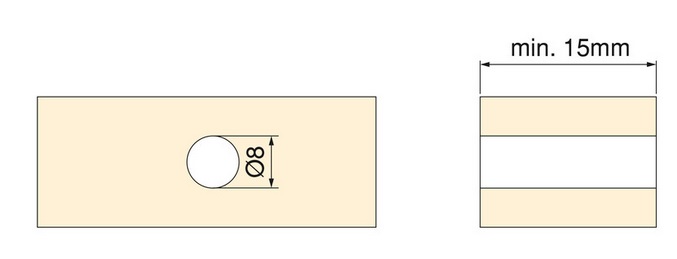 Tam ir divas samazināta izmēra galvas, kas ir iestrādātas mēbelēs ar 8 mm diametru.