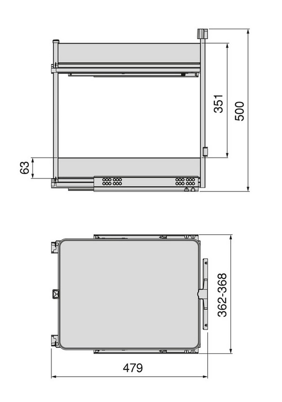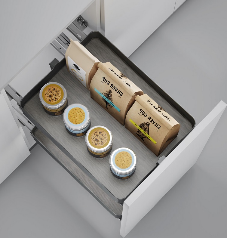Aprīkots ar slēptām pilnībā izvelkamām mīkstās aizvēršanas vadotnēm, ar 30 kg kravnesību un divpusēju stiprinājumu dažādos augstumos lielākai stabilitātei.