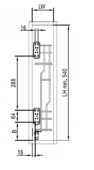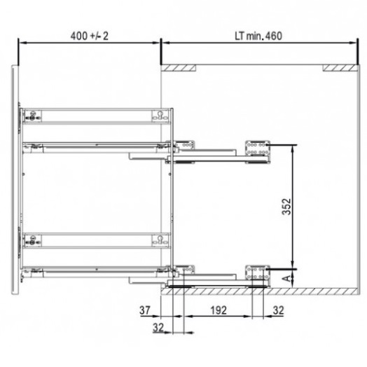 Grozs 200mm korpusam, ar 2 plauktiem, paredzēts pilna izvilkuma tandem tipa vadotnēm, kas komplektējas atsevišķi.
