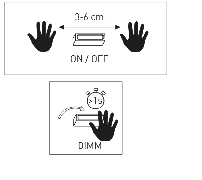 Bezvadu, bezkontakta slēdzis, kas ieslēdz apgaismojumu ar vienu vienkāršu rokas žestu. Vienkārši pietuviniet roku 3-6 cm attālumā uz vienu sekundi, lai LED gaismeklis vai gaismas lente spīdētu.