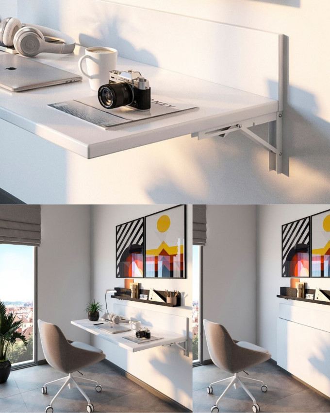 Komplektā 2 salokāmi kronšteini plauktu piestiprināšanai pie sienas.