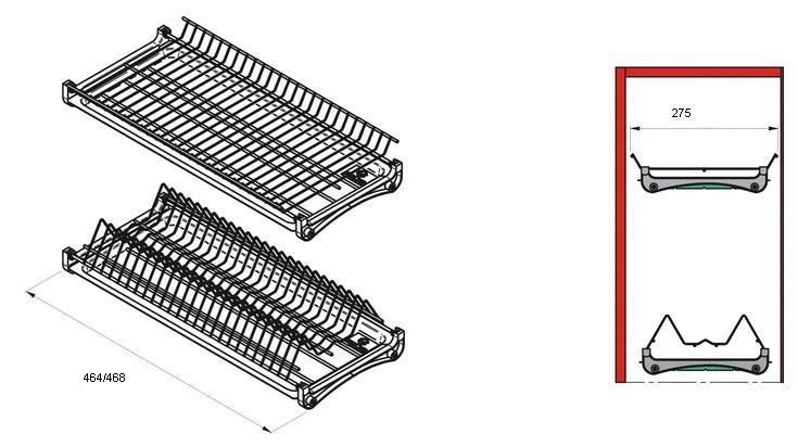 Trauku žāvētava 500mm korpusam, ar rāmi, hromēta. Izmēri: garums 464/468mm, platums 275mm.